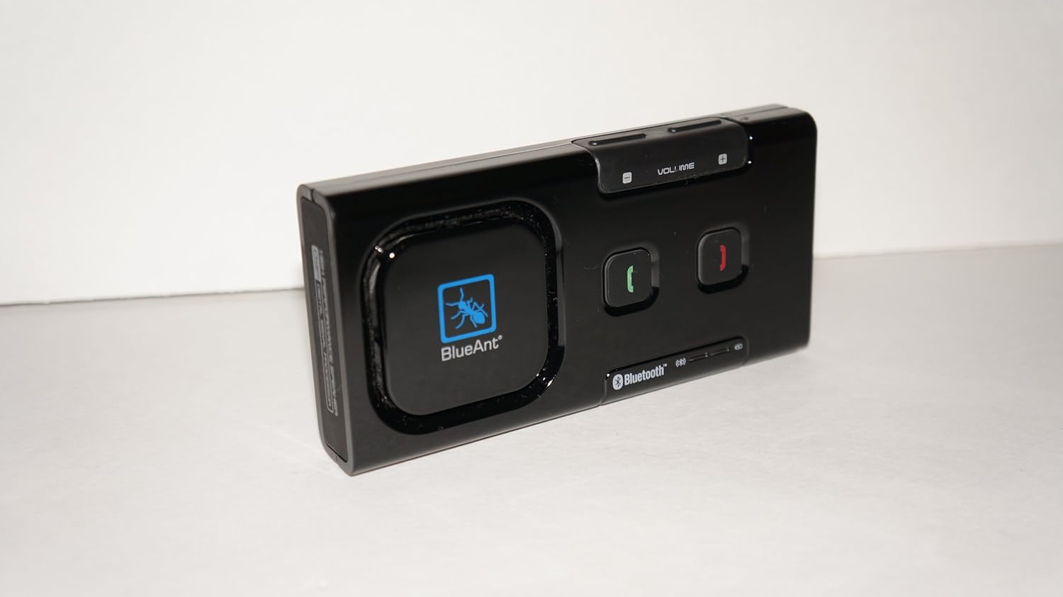 Handsfree speakerphone for a safer, legal alternative to talking on your cell phone while driving; affix to the sun-visor via a two sided magnetic clip