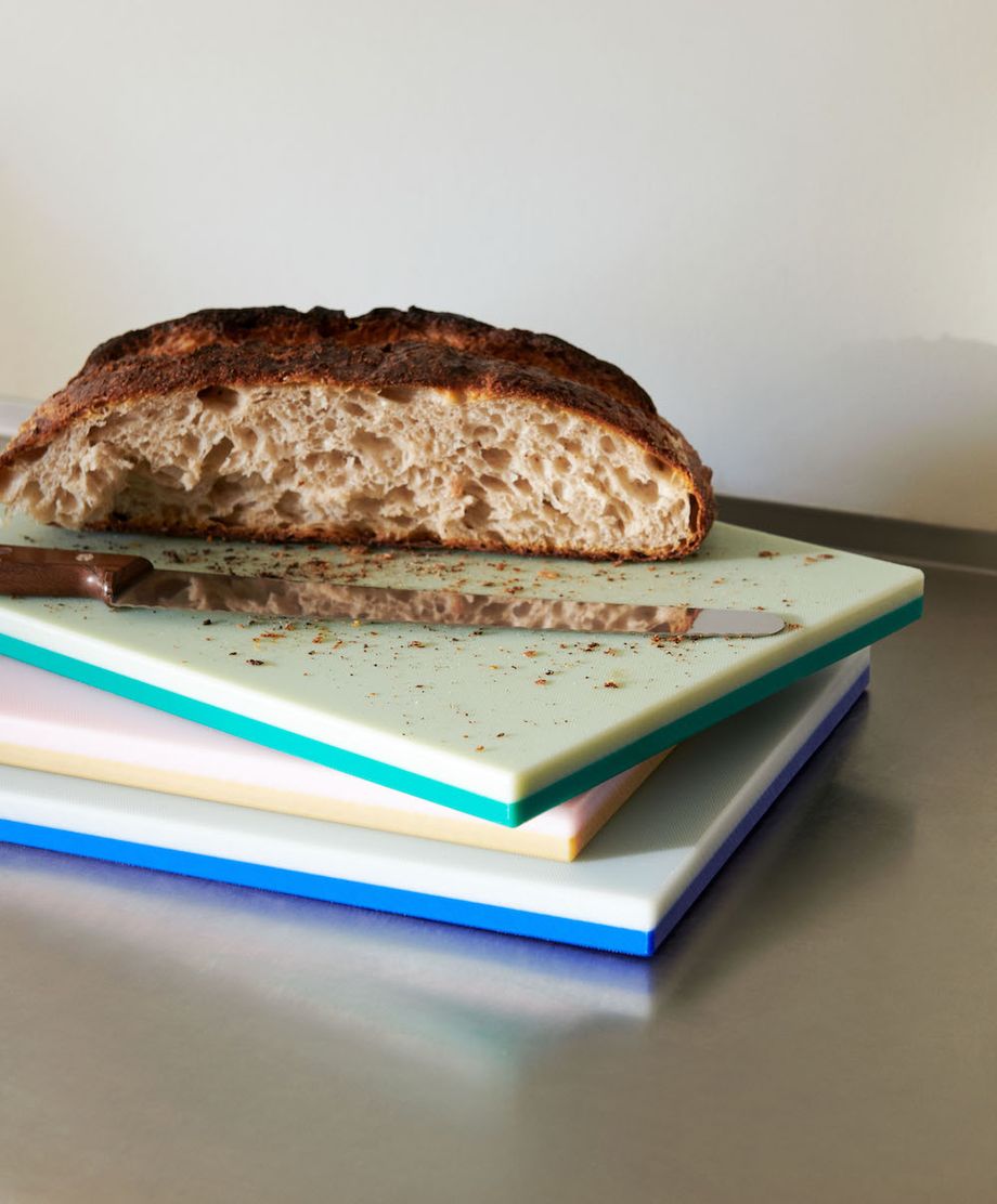 Add a colorful edge to your kitchen with a durable, easy-to-clean cutting board that can be used on both sides for chopping different foods. 0.787" x 11.811" x 7.874" Polyethylene Dishwasher safe or hand wash Imported