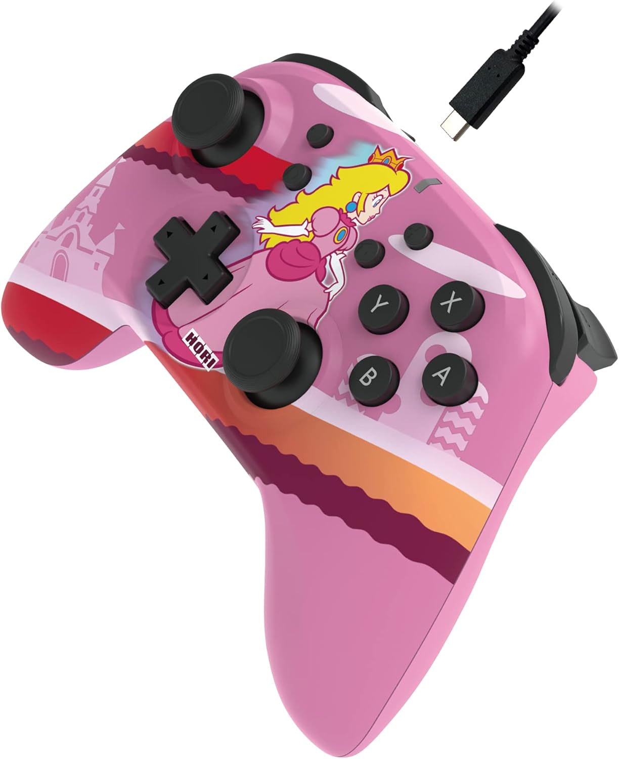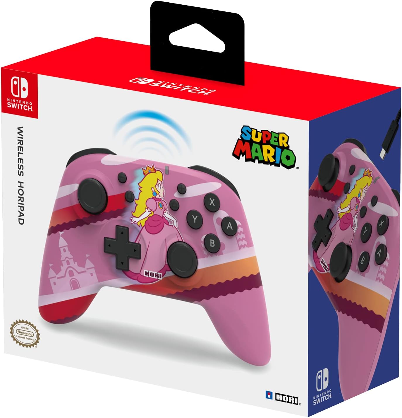 Protect the Mushroom Kingdom with Everyone's favourite Princess in Pink! Introducing the new Princess Peach Nintendo Switch wireless HORIPAD. The built-in rechargeable lithium-ion battery and Bluetooth wireless technology gives you freedom with a 32-foot range and 15-plus hours of battery life. Lightweight yet solid, the snappy and responsive wireless HORIPAD is equipped with an accelerometer and gyroscope for full motion control, making it the go-to choice for Nintendo Switch gamers. Charges with included USB-C cable. Officially licensed by Nintendo. Bluetooth wireless controller with 10-metre range