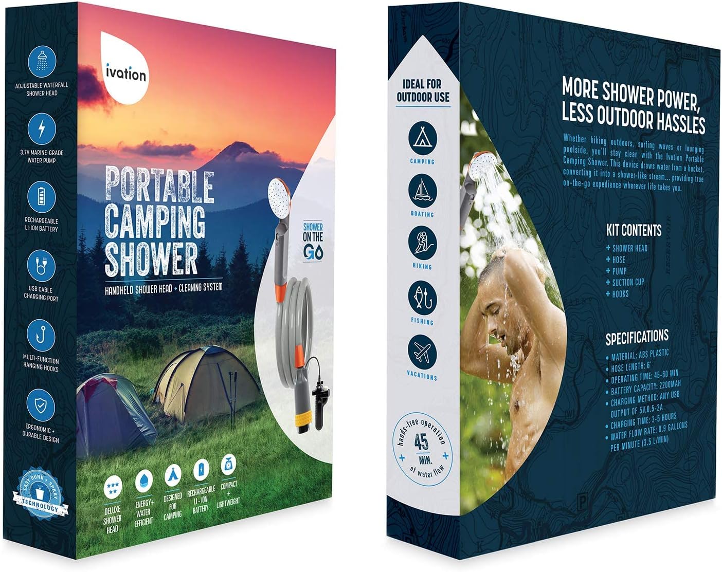 Ivation Portable Camping Shower Handheld & Free Rechargeable Shower Head Gray