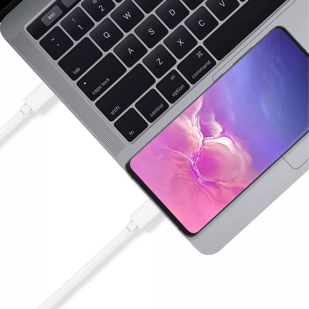 The cable is 4 feet long and designed to charge USB-C devices: Samsung Galaxy®, Google Pixel®, iPad Air / Pro® (2020), Nintendo Switch®, and other Android™ devices.