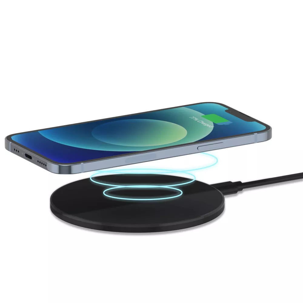 The Just Wireless Wireless Charging Pad will charge your wireless charging enabled Apple iPhone, Samsung Galaxy, or Android devices.