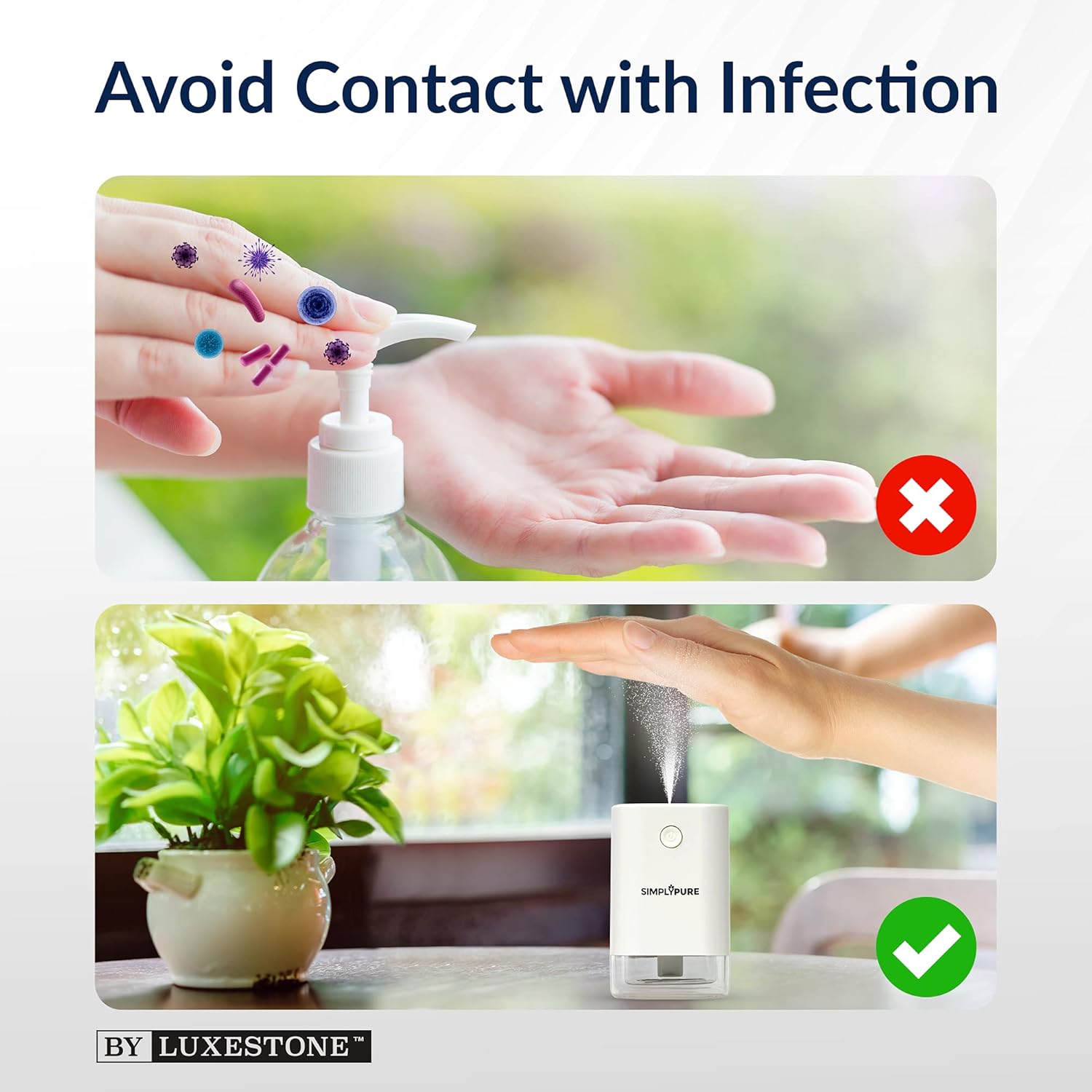 A healthy lifestyle starts with good hygiene. When it comes to cleaning your hands, SimplyPure’s portable, smart sensored portable hand mister couldn’t make it easier. Whether you’re in your home office, cubicle, kids room or classroom, let the SimplyPure Hand Mist spritz your worries away.The dispenser is contactless and touch-free to avoid cross-contamination between users. This compact mist dispenser will look great in your home or office. The SimplyPure can last 3-5 days on a single charge. Fully charged in 3 hours.
