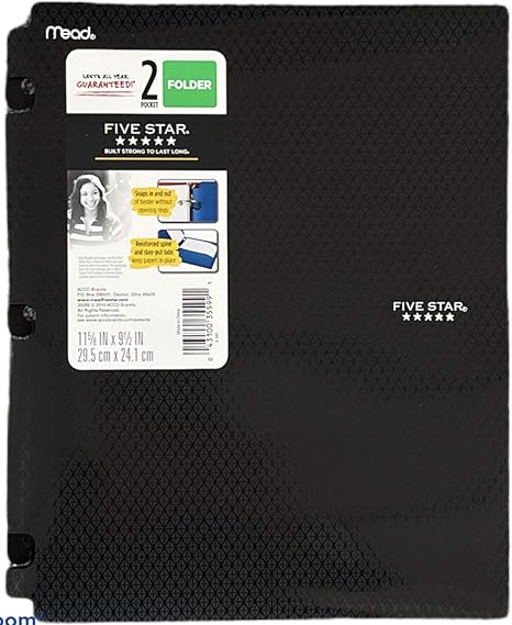 Snap-in Plastic Folder for Binders 2 Pocket - Five Star/Dimensions 9.5 X11.62 Sheet Capacity: 120 (Black)