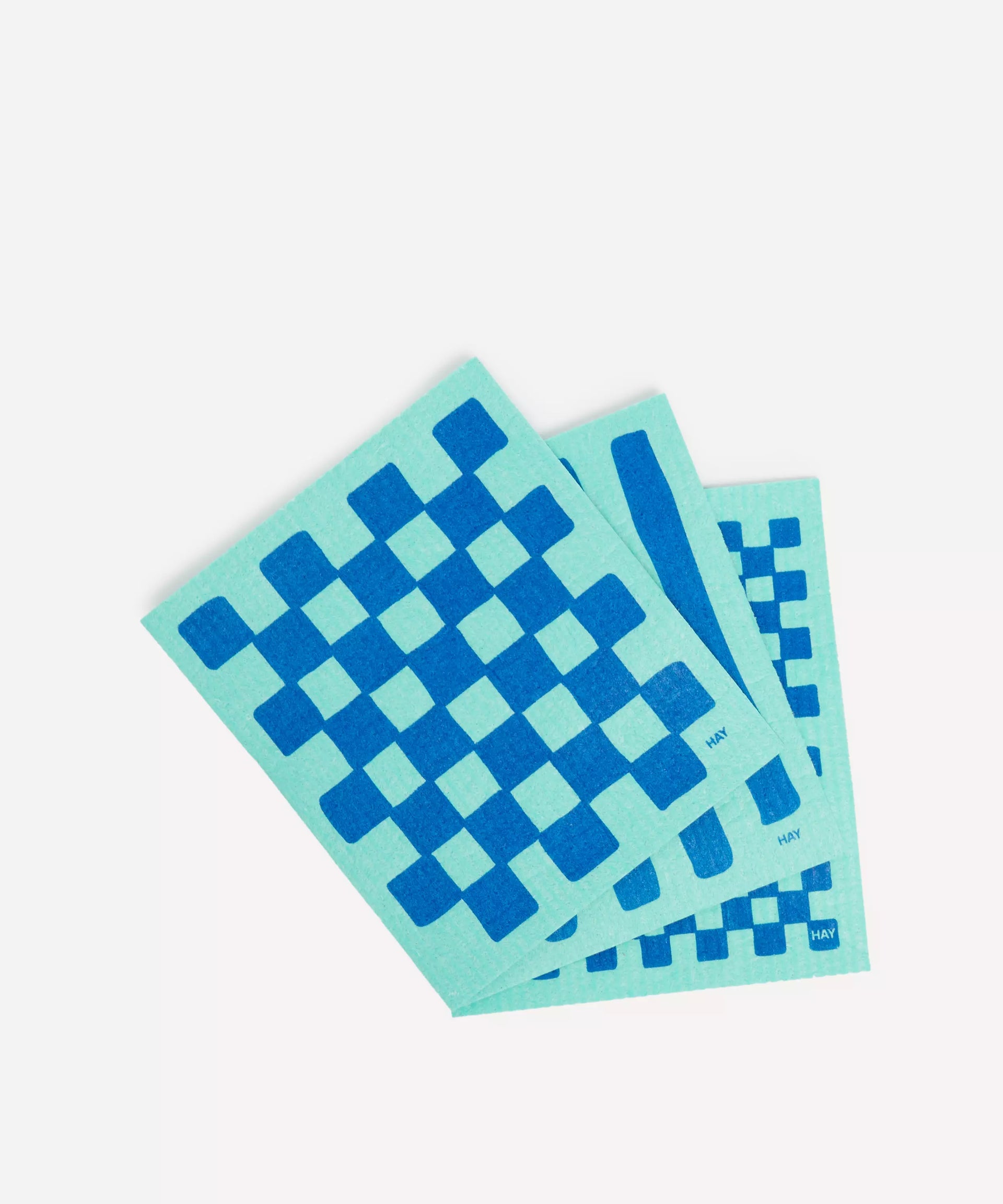Bright colours and graphic patterns add a playful edge to these kitchen essentials. Made from a super-absorbent blend of cellulose and cotton leftover production, the HAY Sponge dish cloths are 100% b...